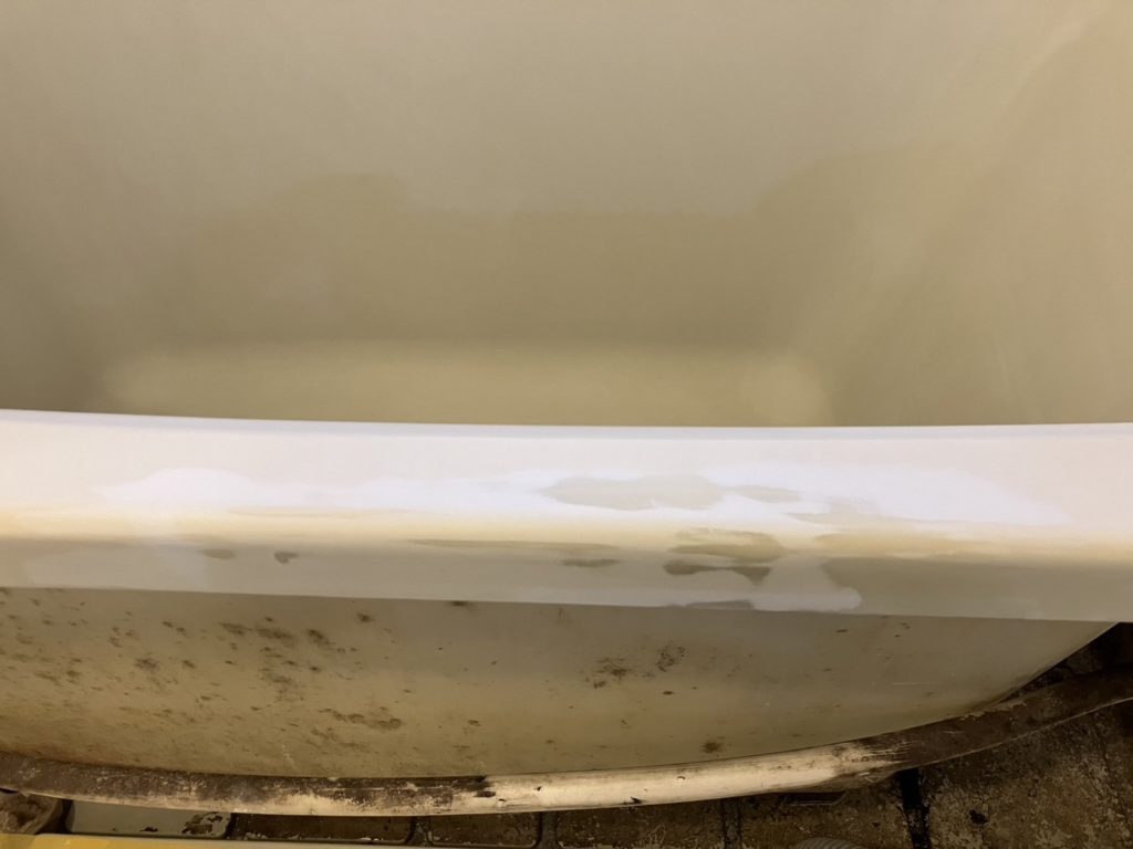 今回の現場は浴槽の縁にひび割れが発生していたため、一般的な再塗装だけでなく下地補修と補強作業を加えた高度な施工となりました。